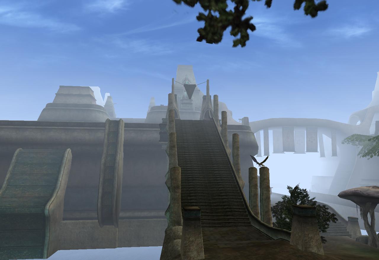 Dieses Bild wurde mit Hilfe des Morrowind Graphic Extenders (MGE) aufgenommen. Durch diesen wird durch die Sichtweite im Spiel unbeschränkt.