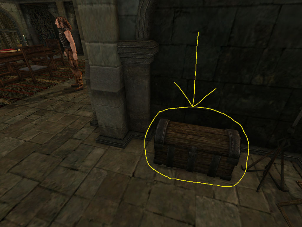 Ausrüstungskiste (Pfeil) der Kriegergilde in Sadrith Mora, Wolfenhalle.