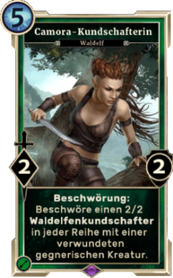 Camora-Kundschafterin (engl. Camoran Scout Leader) ist eine Waldelfenkarte aus The Elder Scrolls: Legends.
