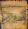 Der Schatz dieser Karte befindet sich auf Auridon bei Vulkhelwacht. Reist dazu zum Wegschrein von Vulkhelwacht und geht nach Süden an den Hafen der Stadt. Wendet euch nach links und folgt der Küstenlinie nach Osten. Ihr seht einen langen steinernen Kai. An der äußersten Spitze, wo er ins Meer übergeht, findet ihr den Schatz.