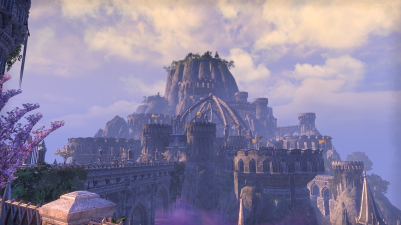 Der Berg Eton Nir mit der Stadt Wolkenruh auf Sommersend.