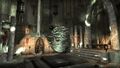 daneben in neuerer Zeit verschütteter Eingang von der Oberfläche Niche mit Schrein überlebensgroße Statue Molag Bal; Gitter zum extra abriegeln