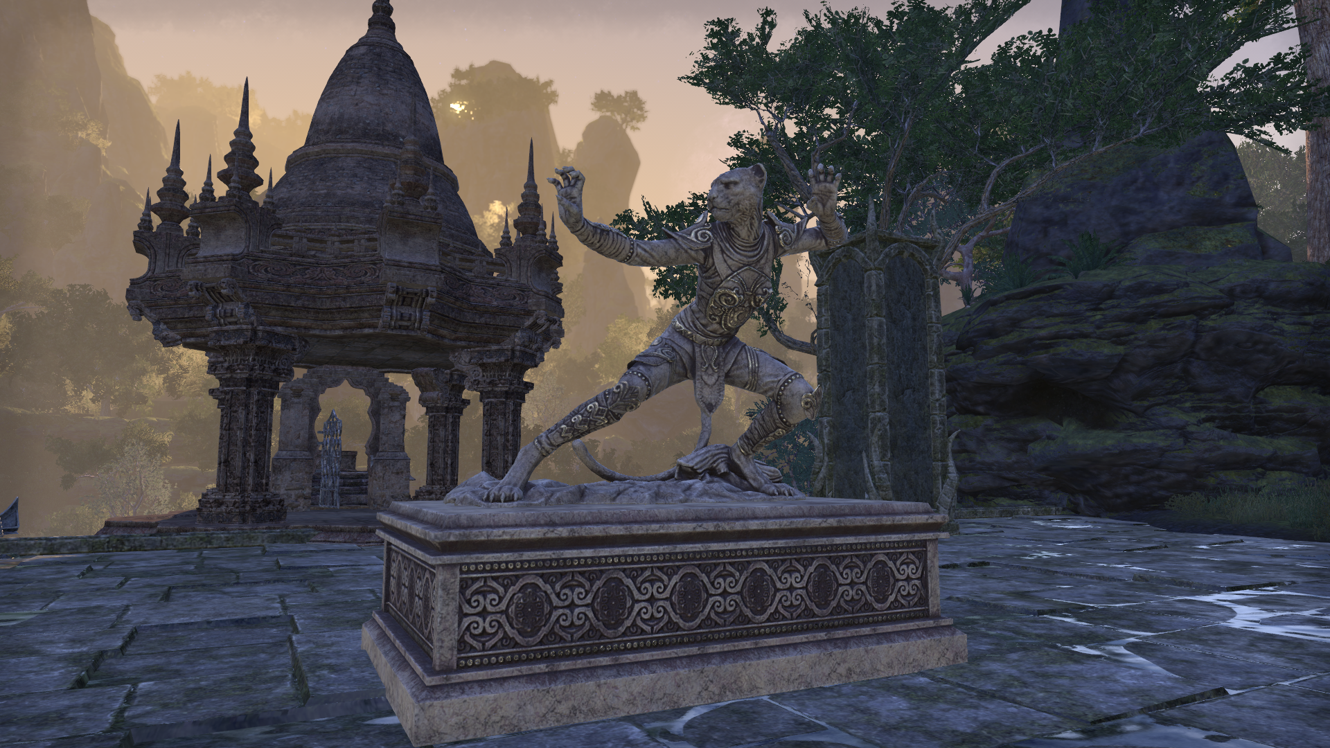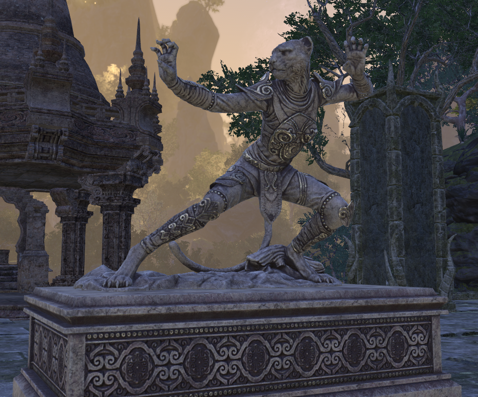 Die Statue eines Tojay-raht in The Elder Scrolls: Online. Die Statue kann vom Errungenschaftsausstatter Lathahim in Krempen erworben werden.