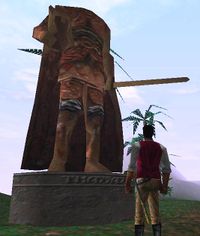 Erstaunlicher ist allerdings sein Standbild in einer anderen Stadt: Bravil hat ebenfalls eine Statue errichtet, wahrscheinlich um die wirtschaftlich schwache Stadt mit dem Segen des Aedra zu stärken.